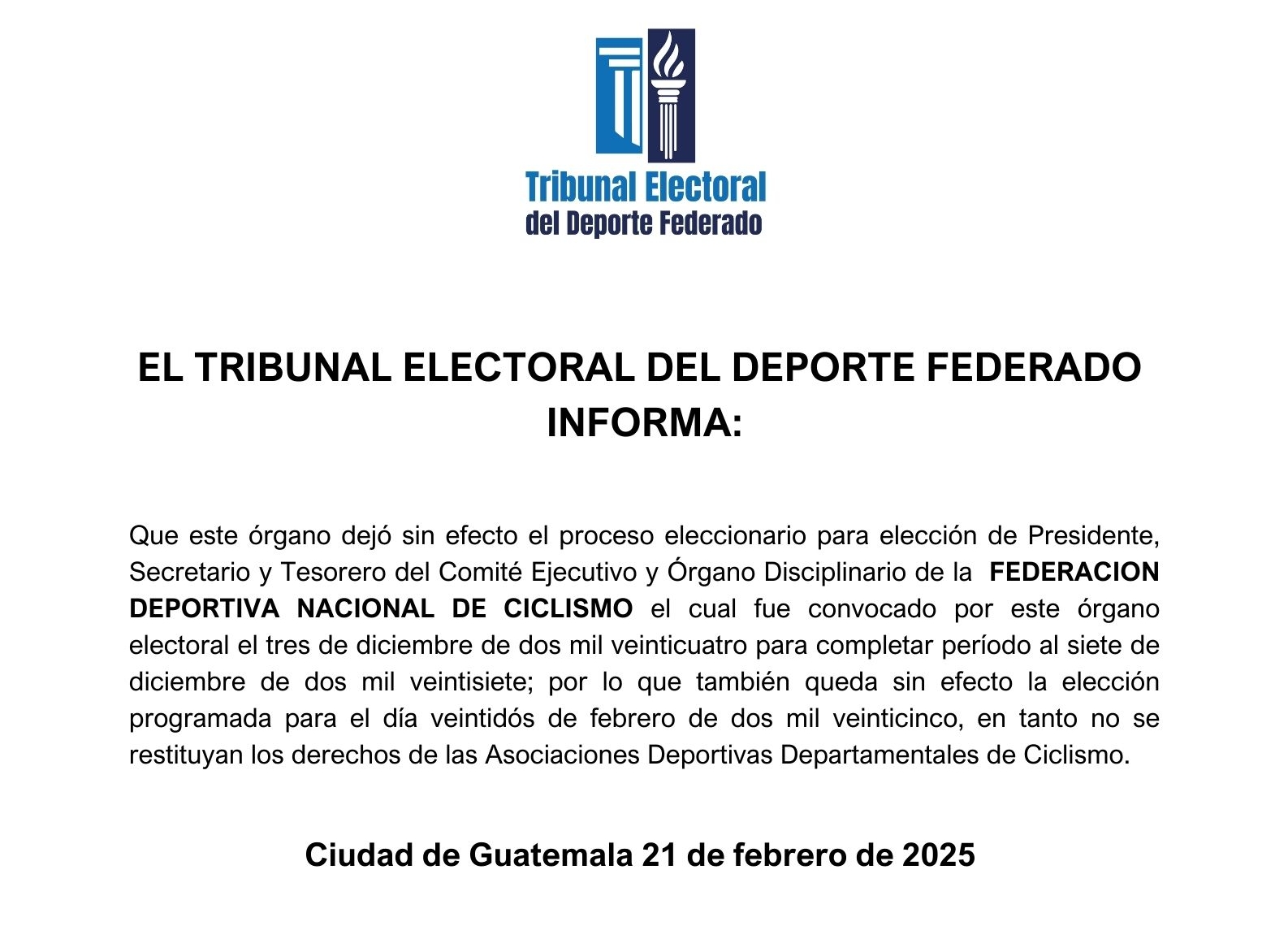Que este órgano dejó sin efecto el proceso de elección de la Federación Deportiva Nacional de Ciclismo
