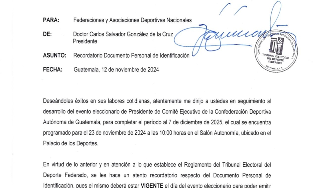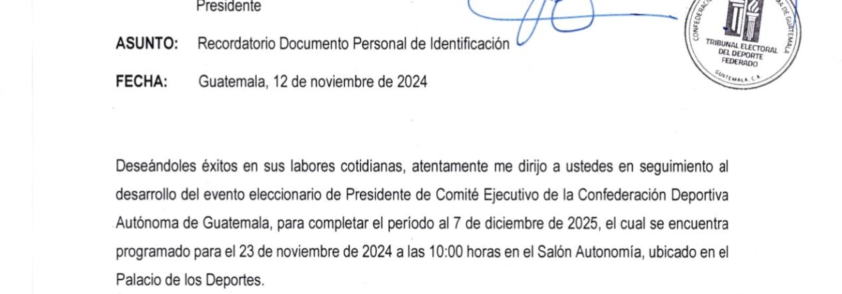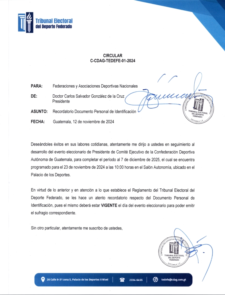 El Tribunal Electoral del Deporte Federado hace un atento recordatorio respecto del Documento Personal de Identificación -DPI-
